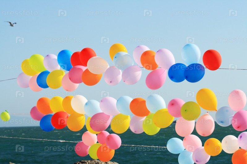 Разноцветные шары на фоне голубого неба и моря