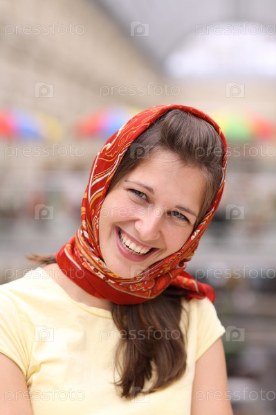 Счастливая девушка в платке