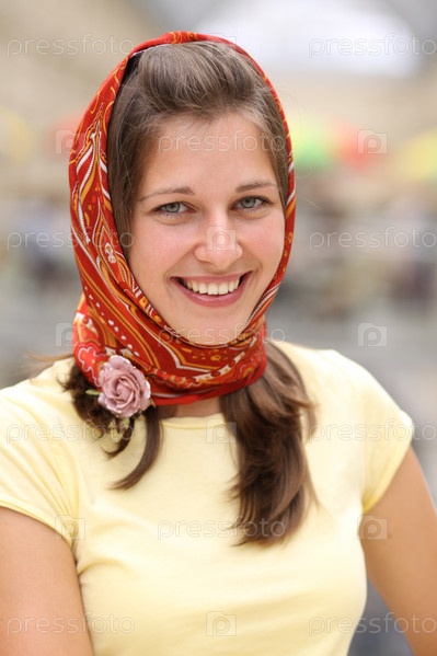 Улыбающаяся девушка в платке