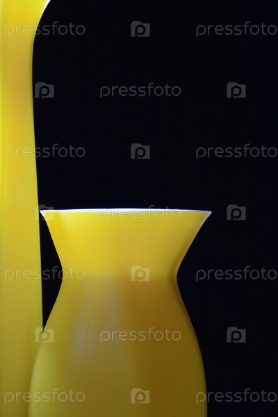 Современные желтые вазы, изолированные на черном фоне