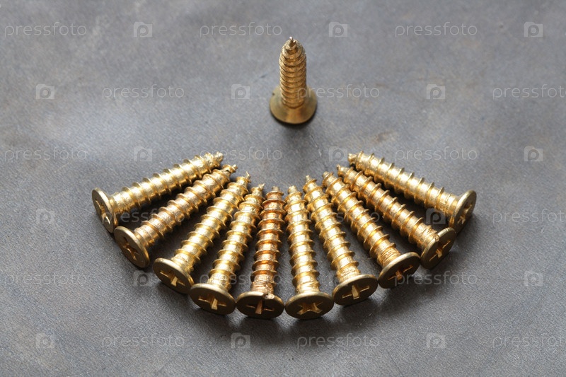 Саморезы крупным планом на сером фоне