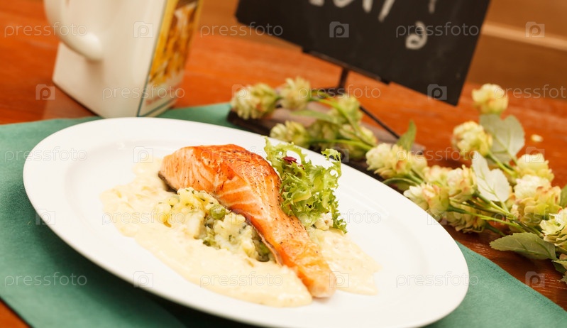 Стейк из лосося с овощами