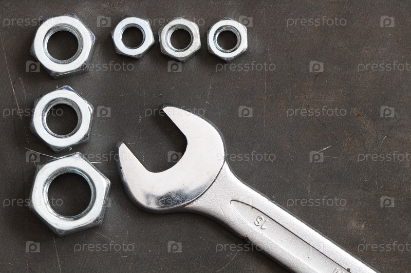 Разводной ключ и гайки крупным планом