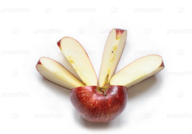 Нарезанное яблоко на белом фоне