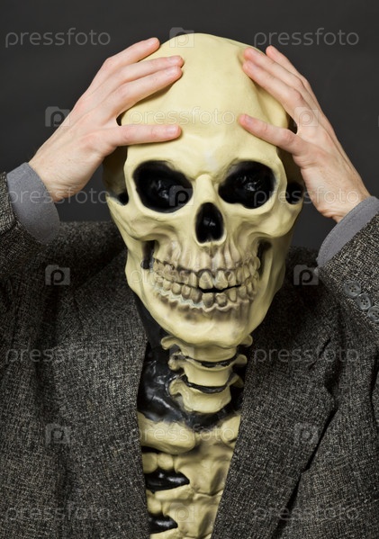 Забавный скелет схватился за череп
