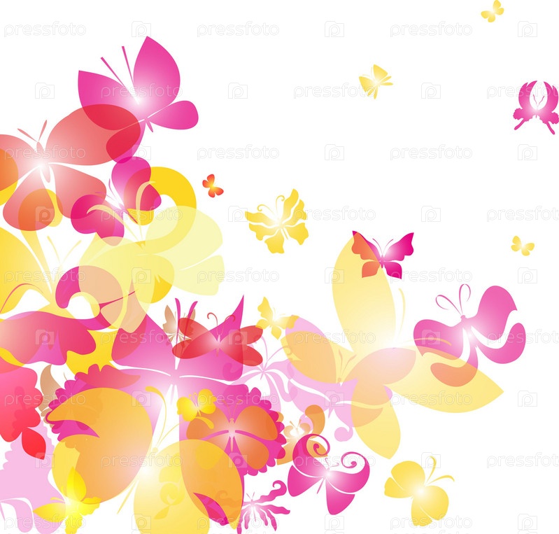 Яркая абстракция с желтыми и розовыми бабочками