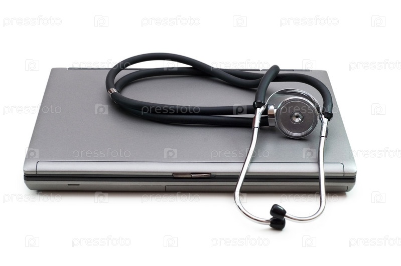 Стетоскоп и ноутбук, иллюстрирующие концепцию цифровой безопасности