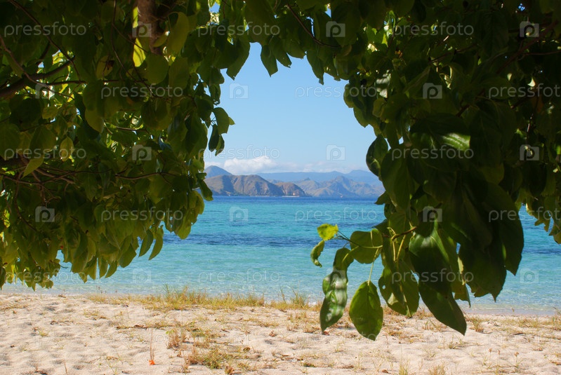 Морской пейзаж сквозь листву