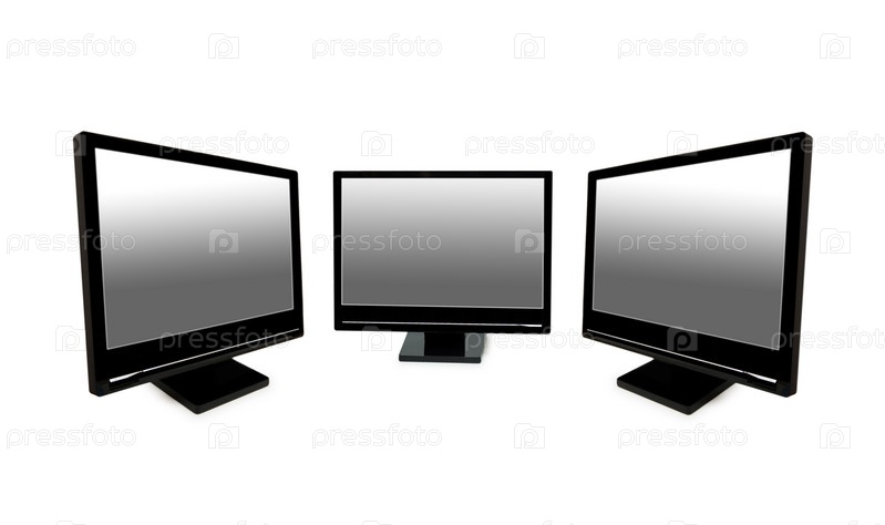 Три черных ЖК-монитора на белом фоне