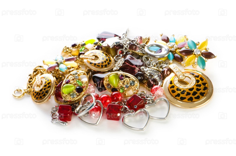 Различные ювелирные изделия на белом фоне