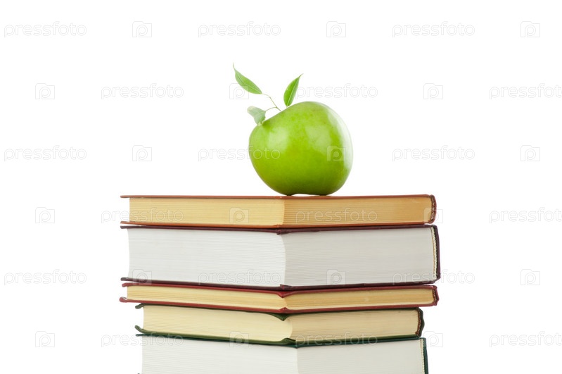 Книги и яблоко, изолированные на белом фоне