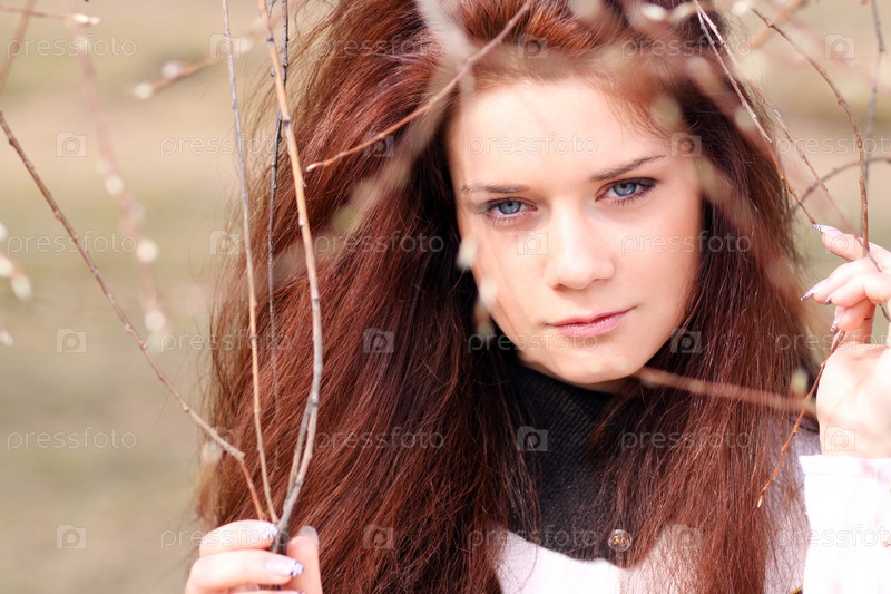 Девушка на фоне веток