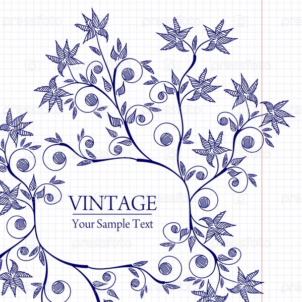 Листок в клетку с цветочным орнаментом