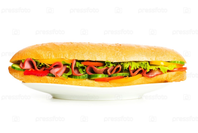 Гигантский бутерброд, изолированный на белом фоне
