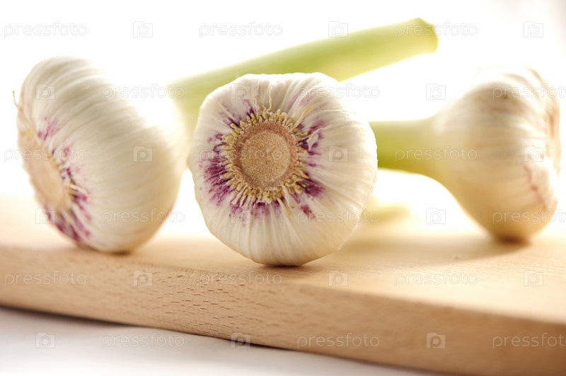 Чеснок на деревянной разделочной доске