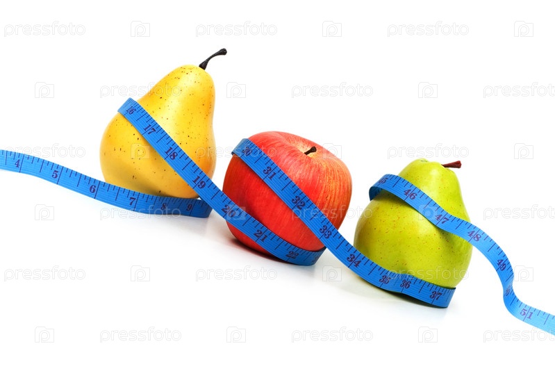 Груши и яблоки, обмотанные сантиметром