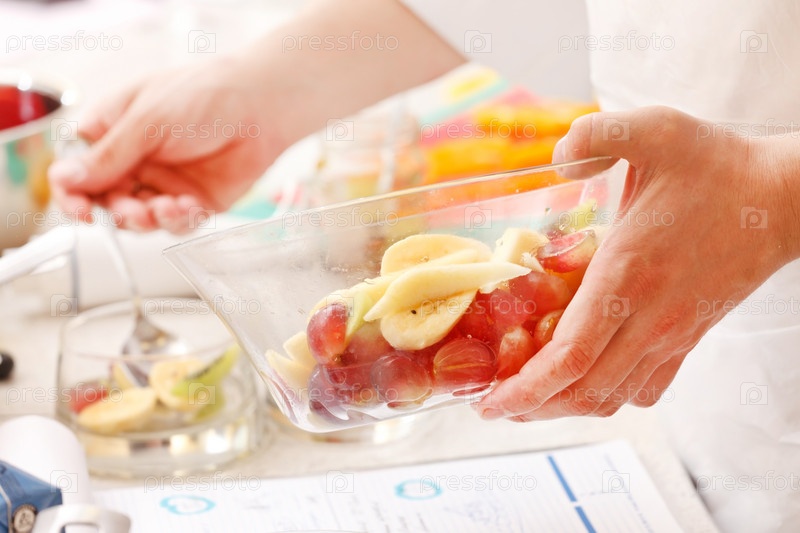 Шеф-повар делает летний десерт