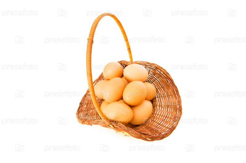 Корзина с яйцами на белом фоне