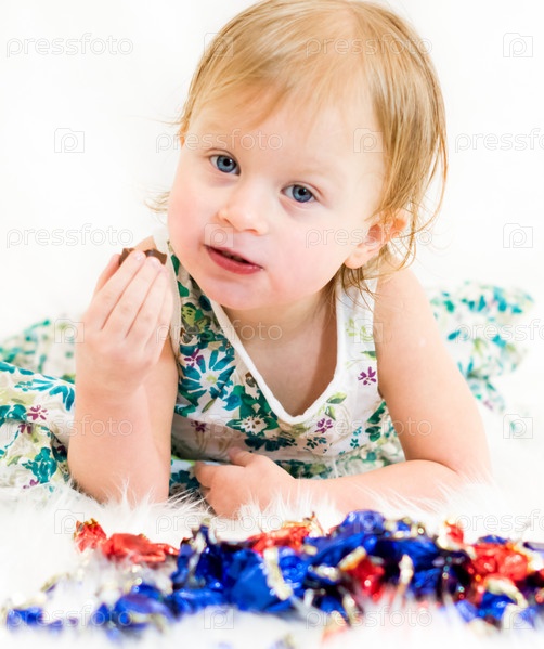 Красивая девочка ест конфеты