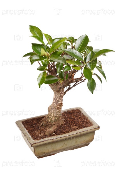Дерево бонсай в горшке, изолированное на белом фоне