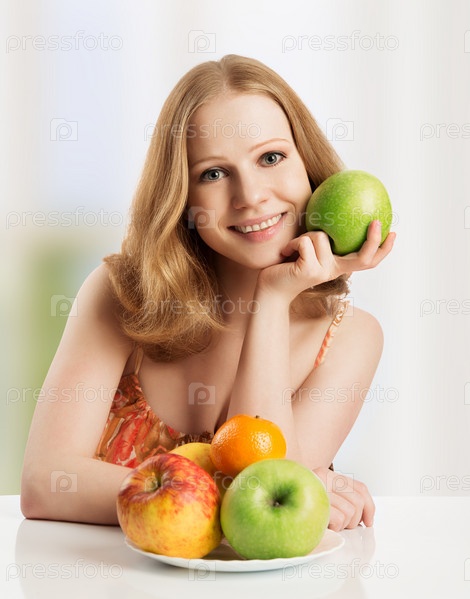 Здоровая женщина с яблоком у себя дома