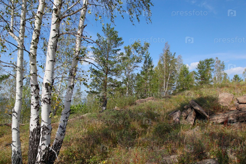 Пейзаж с березами и соснами