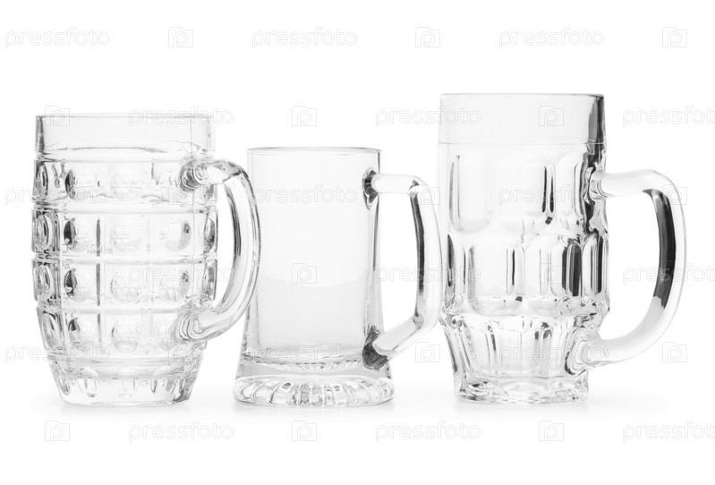 Пивные бокалы на белом фоне