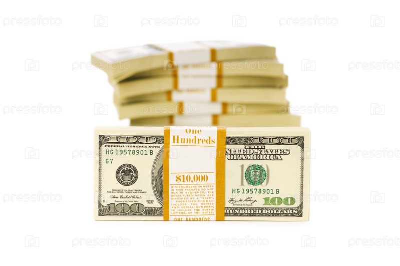 Пачки долларов на белом фоне