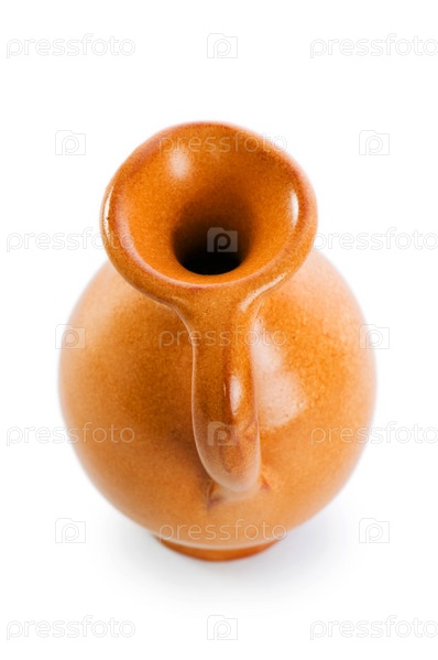 Глиняный кувшин на белом фоне