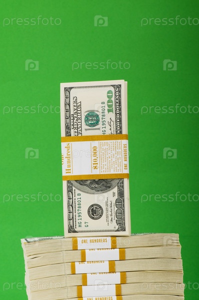 Пачки долларов на зеленом фоне