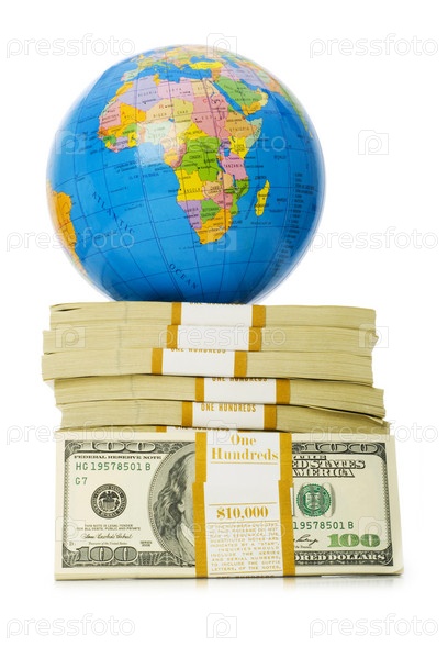 Глобус и куча долларов изолированы на белом