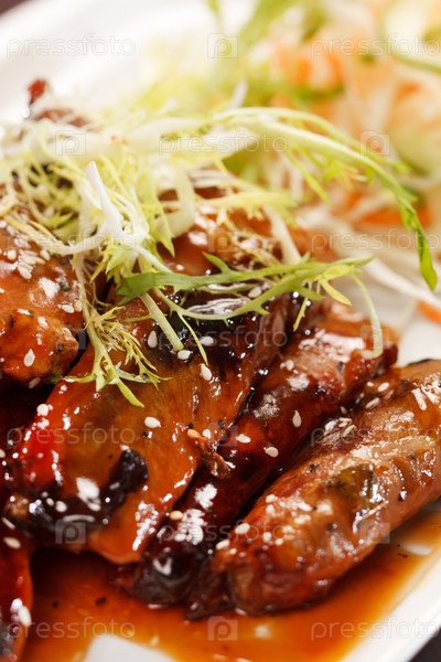 Приготовленные на гриле ребрышки с салатом