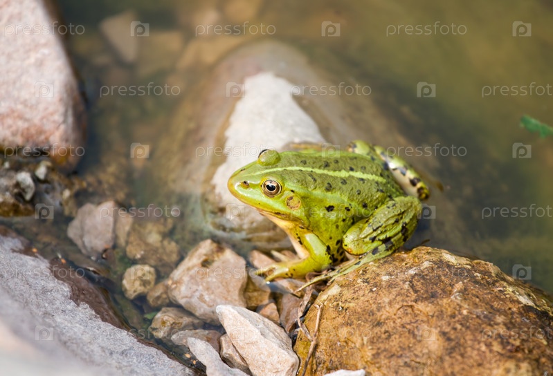 Зеленая лягушка на камне