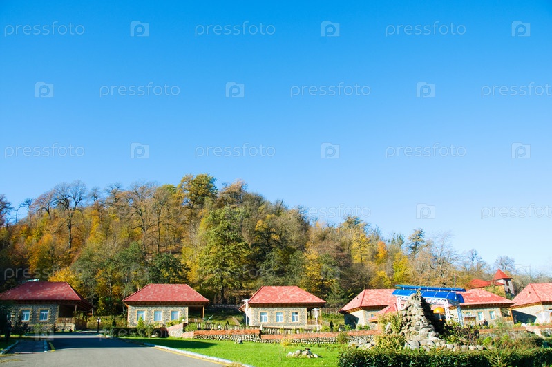 Дачные домики на фоне горного леса