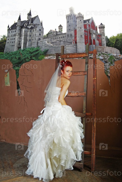 Девушка в свадебном платье на лестнице. Беларусь, Минск