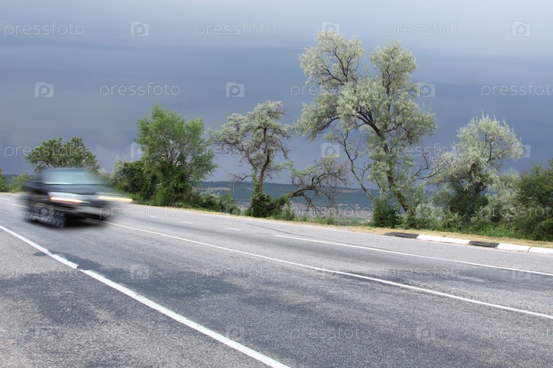 Размытый автомобиль на дороге. Скорость