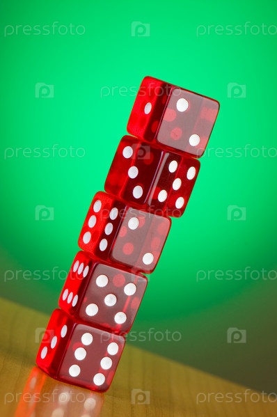 Красные игральные кубики на зеленом фоне