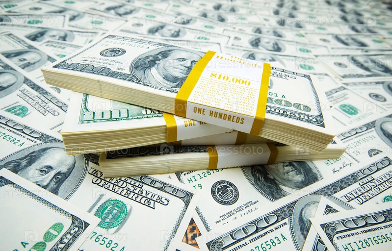 Пачки долларов на денежном фоне