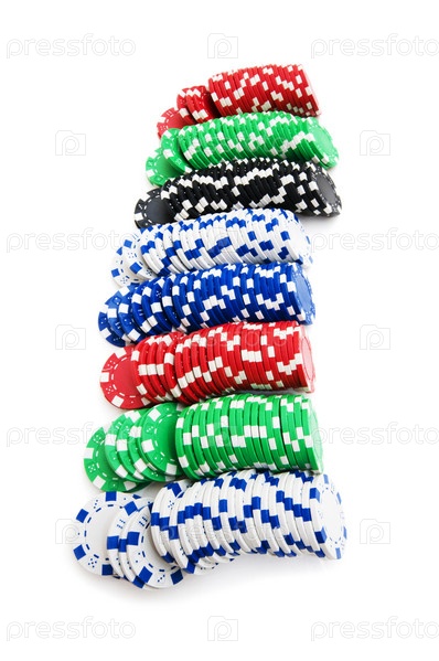 Чипы казино изолированы на белом