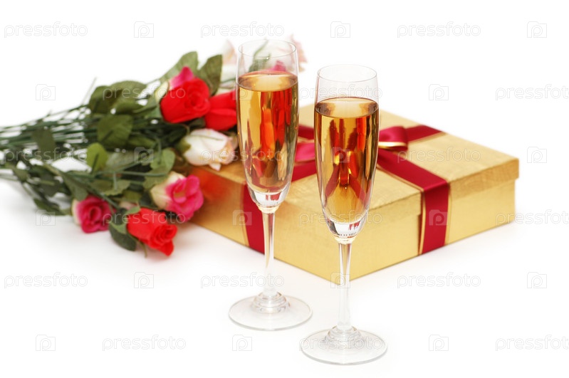 Подарок и два бокала шампанского