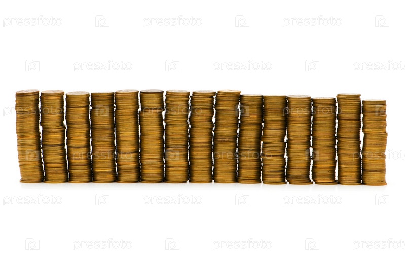 Стопки монет на белом фоне