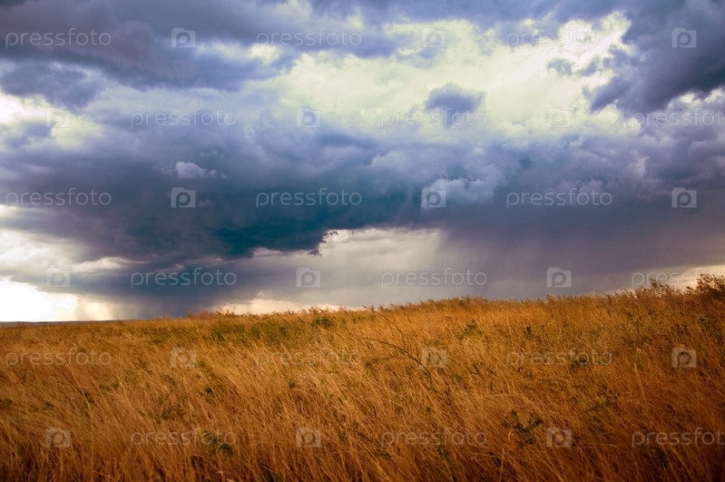 Грозовое небо над полем осенью