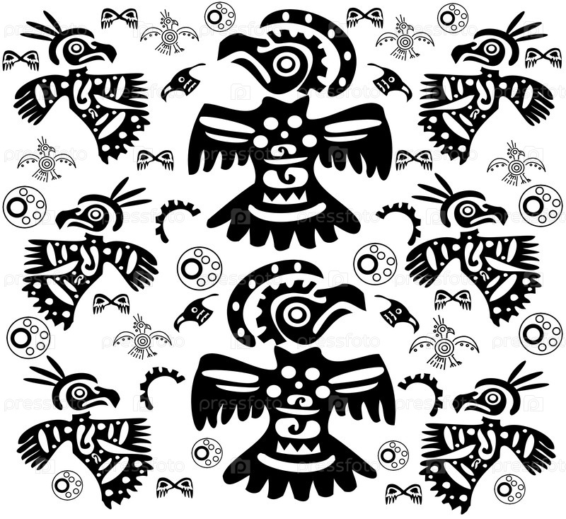 Оригинальный черно-белый фон с татуировками в виде птиц