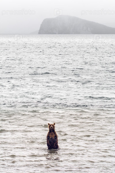 Бурый медведь рыбачит