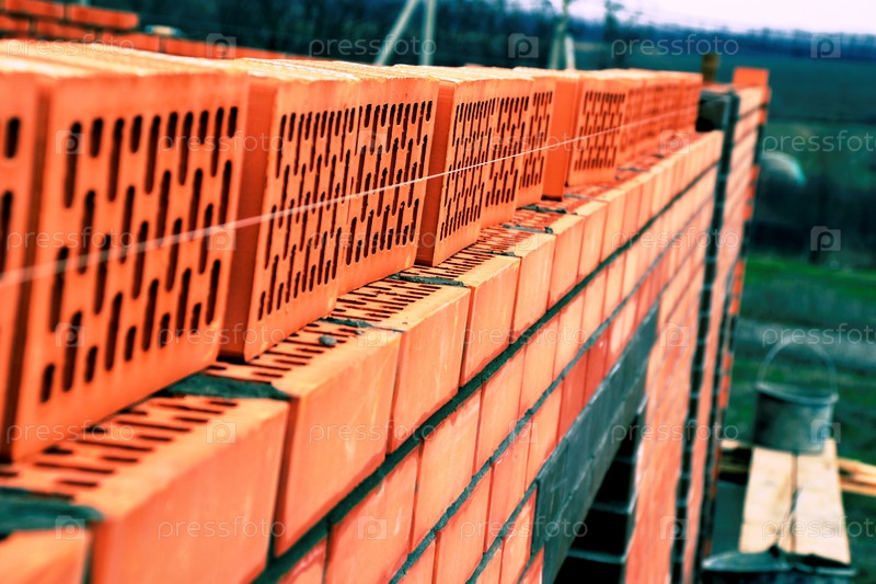 Стройплощадка, кладка стен из красного кирпича