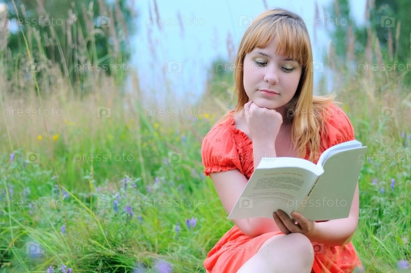 Молодая девушка читает книгу на природе