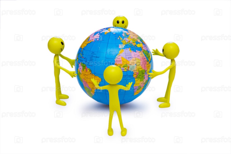 Смайлики, стоящие вокруг глобуса