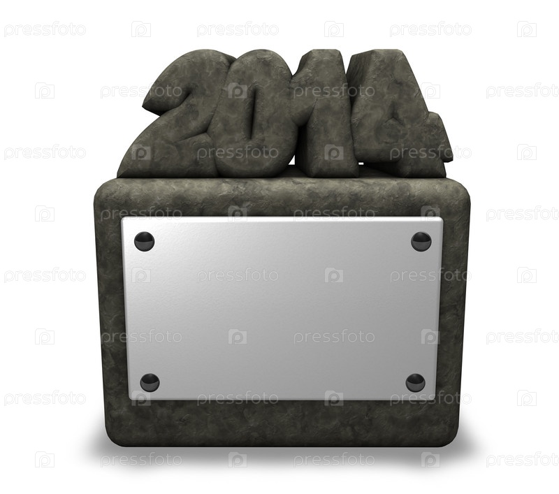 Каменная фигура 2014 года на постаменте с пустой табличкой. 3d иллюстрация