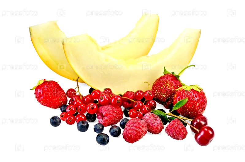 Красные и черные ягоды с дыней