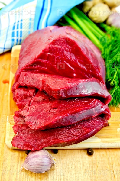 Говядина с чесноком на деревянной доске